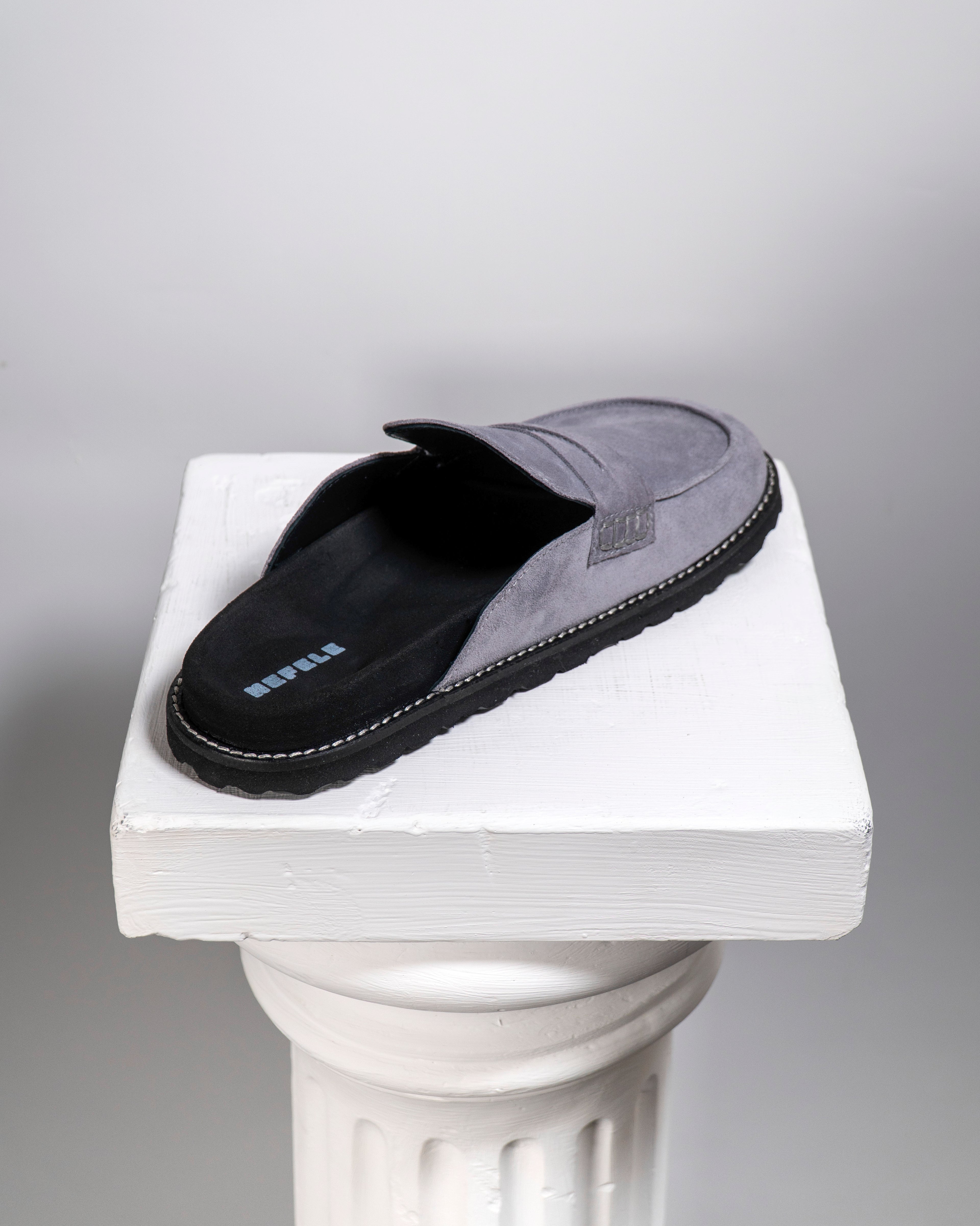 La ciabatta Chione è ispirata alla personificazione della neve nella mitologia greca. Simbolo di purezza, silenzio e morbidezza, questa ciabatta evoca la quiete dell’inverno: superfici vellutate, forme essenziali e una calzata soffice che avvolge il piede con delicatezza.